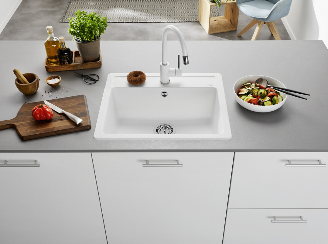 Hapesira e vazhdueshme per rubinet krijon nje zone te organizuar dhe ergonomike, ndersa seti i shkarkimit me tub qe kursen hapesire ofron nje instalim praktik nen banak. Me Pilet shkarkimi 90 mm, uji largohet ne menyre efikase dhe pa veshtiresi gjate perdorimit te perditshem.